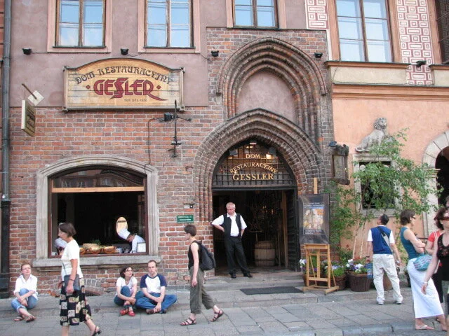 Our favorite restaurant on the square was the Gessler Restaurant, located in a basement space with signatures of notables all over the stucco walls. There were costumes and antiques decorating the rooms and the foods were authentic and delicious. Both Warsaw and Krakow have wonderful eateries and cafes below street level with archways built into the stone rooms.